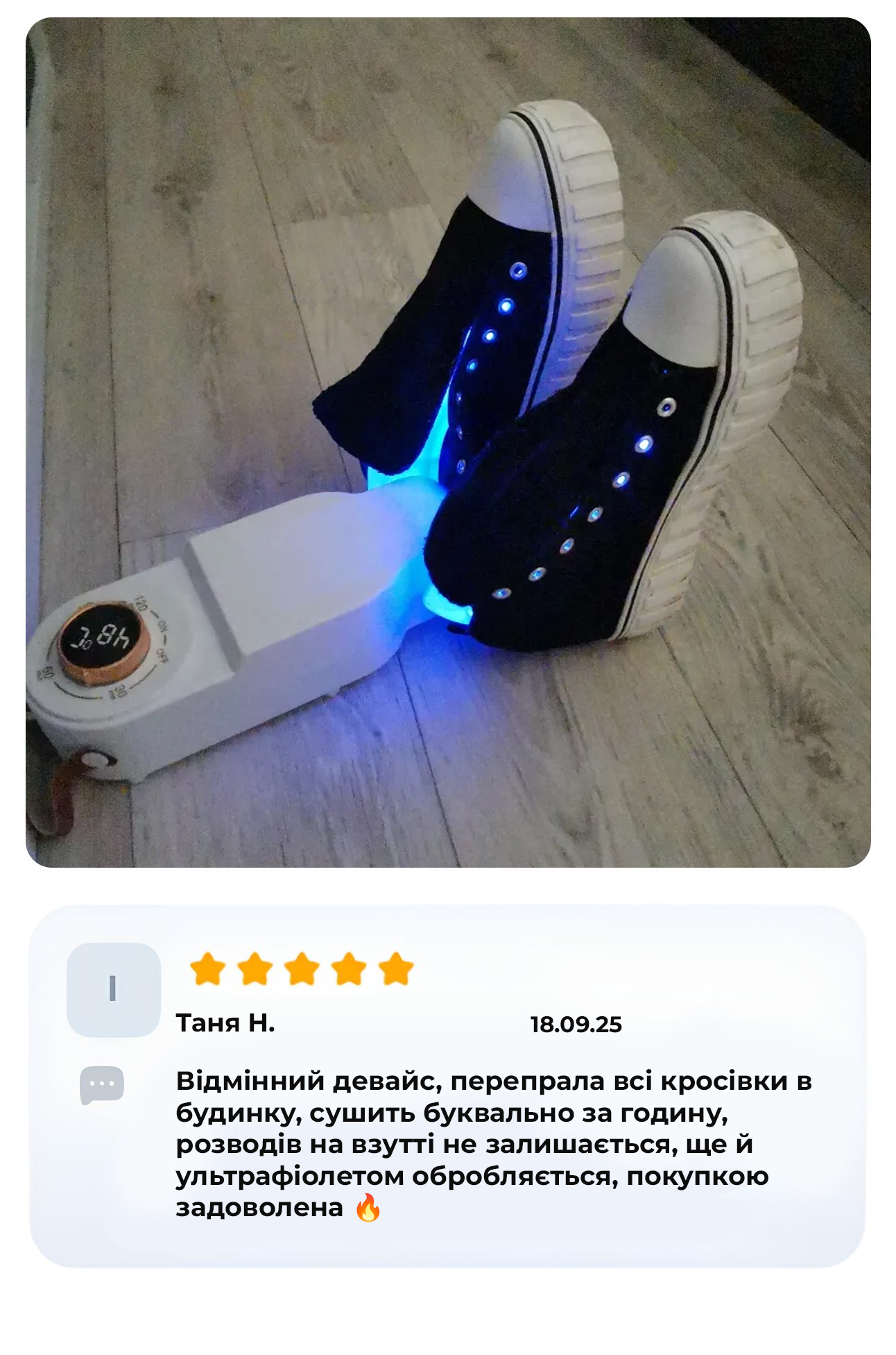 взуття з ультрафіолетовим підсвічуванням забезпечує швидке висушування будь-якого взуття без шкоди